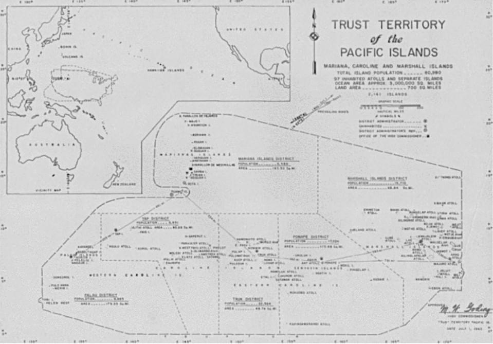 Photo: U.S. Trust Territory Government, n.d. 1950s, Map of the Trust Territory of the Pacific Islands.