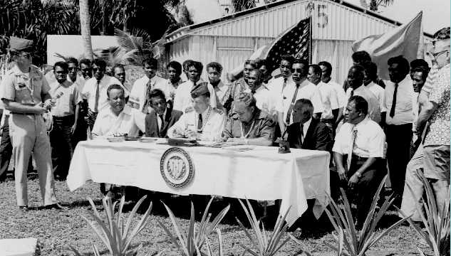 Photo: Trust Territory of the Pacific Islands, 1976, ceremony returning Enewetak Atoll to its people.